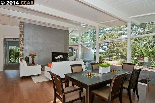 Mid-century modern 3203 sq. ft., 4 bedroom, 3.5 bath, single level. View thru entry, walls of glass and open entertainment areas, great flow, granite, hardwoods, new cabinetry, stainless steel appliances, center island. 3 car garage 1.45 acre lot