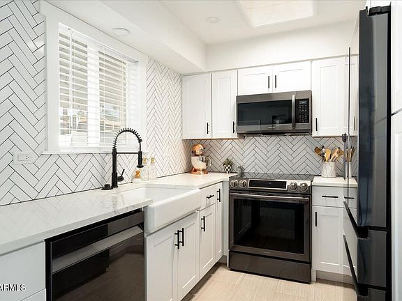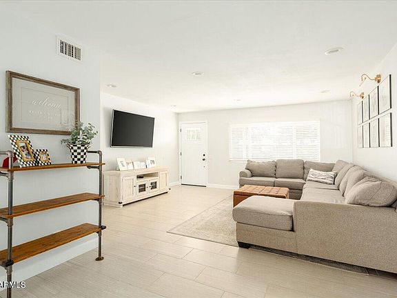 This impeccably remodeled turn-key home is ideally situated just south of Arcadia. As you arrive at the property, you will notice the house's charming curb appeal and views of Camelback and Papago. Inside, no detail has been spared. The kitchen has undergone a complete transformation with sleek quartz countertops and top-of-the-line appliances. Both bathrooms exude on trend style with subway tile accents, shiplap detailing and updated vanities. Each room offers ample space for comfortable living. Outside, the backyard features a generously sized covered patio and expansive grassy area. The location is unparalleled, offering effortless freeway access and close proximity to the airport, as well as the vibrant dining and entertainment options of Arcadia and Old Town Scottsdale.