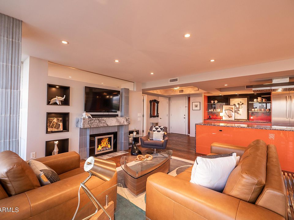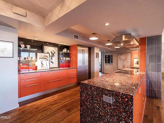 WELCOME to the Regency on Central! This historic Mid Century building has become iconic to the Phoenix skyline! Inside #501 you'll discover a ONE OF A KIND unit that has been beautifully reimagined with an art inspired chefs kitchen that offers custom cabinets and countertops, stainless steel appliances & designer details that have been installed throughout. Curated with color, this artistic home is truly a piece of art itself. Gorgeous bathrooms with customizations that enhance the home in every way. Wonderful open concept floor plan that is great for entertaining. Enjoy 2 private balconies with breathtaking views of the Skyline, mountains, and pool area below while being in walking distance to everything in Midtown! Incredible building amenities for luxury living! WELCOME HOME!