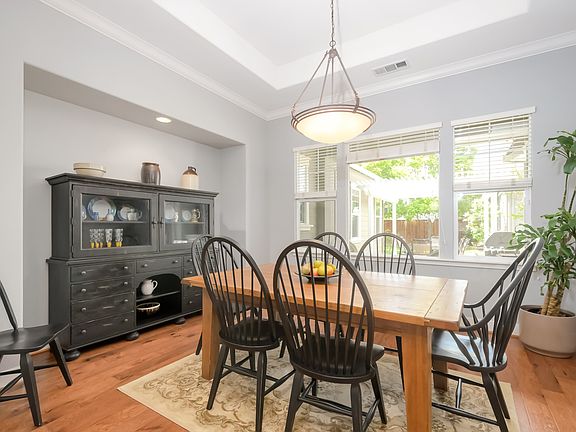 Elegant and highly upgraded 2,190 sqft. single story home located in the prestigious Crests Blanca Development in South Livermore Wine Country. Pride of ownership shows throughout. The spotless gourmet kitchen, which is a true entertainers delight has granite countertops, island, professional grade stainless steel appliances,walk-in pantry and pendant lighting over the island. There is also a built-in desk, open eating area and an abundance of cabinets for storage. Hardwood floors flow throughout most of the home with high end carpet in the parlor and all bedrooms. The secondary bathroom has upgraded tiled floors, counter-top and shower surround. Other features of the property include, built-in speakers, crown molding, built-in entertainment center and rock fireplace in the family room, wood blinds, designer paint, and formal dining room. The master bedroom suite is open and airy with an abundance of windows with backyard views. The master bath has a vanity with dual sinks, jetted tub, walk-in shower and upgraded tile throughout. The newly painted and landscaped home sits on a 9,375sqft lot. The professionally landscaped backyard has a large covered patio, wood trellis for addtional shade and grass area. There are an abundant of mature trees that line the property and decrative shrubs that complete the yard. The home has a detached oversized two car garage with partial office conversion. The extended driveway provides plenty of parking space, porte cochere and side door access to the home. The home is within walking distance of vineyard walking paths and local wineries!