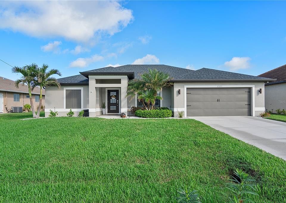 Beautiful! Like new home. Perfect SW Cape Coral location and an interior that is in immaculate condition. Home consist of over 1,800 ft.² of living area, 3 bedroom, plus den 2 bathroom, and 2 car garage. This home has several high-end features. Some of the features include 42" custom kitchen cabinets, Level 3 granite, custom organized walk-in pantry, SS Samsung appliances, Custom window shutters, freshly painted in 2020, low maintenance plank flooring, Crown molding throughout home, Fans in every bedroom, Master bathroom has jetted tub walk around double headed shower and custom closet organizers. Laundry has Custom cabinets Samsung washer & dryer, and freestanding utility tub. Lanai is an enclosed Sunroom with separate HVAC unit. No HOA and assessments are paid! Enjoy your dinner on the back patio and fun for the dogs and family in the fenced in backyard. This home will impress the pickiest of buyers.