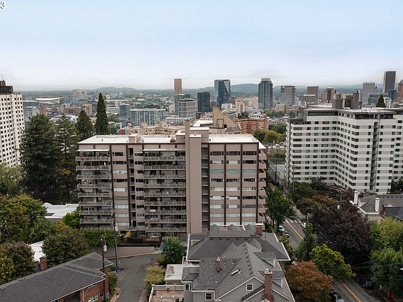 This is truly cosmopolitan living at its best! A spacious, light, and bright mid-century abode is waiting for you in Portland's only Co-op tower: the Park Vista. Perched at the base of Portland Heights and nestled in the Kings Hill Historic District, nearly adjacent to Washington Park, the Park Vista Co-op is quickly becoming THE coveted address. Unit 903 has been beautifully updated with luscious cork floors throughout, an updated kitchen with Silestone counters, Bosch & GE SS appliances, Butler's pantry/utility room with Bosch washer & dryer, wine cooler and extra freezer. Loads of cabinet space. Designer lighting throughout, new HVAC with 3 mini splits. Enjoy peaceful sunsets on your spacious covered terrace Over 250 SF of outdoor space; lounge or garden as your mood suits. Expansive views to the west and north. A vibrant, active community enjoys social hours, wine tastings, and more in the lobby's garden room. This Mid-Century icon harkens to an era of simpler pleasures. The perfect location with walk score of 94, you are minutes to Washington Park, Zupans, Uptown Shopping, transit, and the city's finest restaurants. Residents enjoy the services of a concierge, and security of monitored guests. Please note: CASH buyers only, no rentals, no pets other than service animals and emotional support animals.