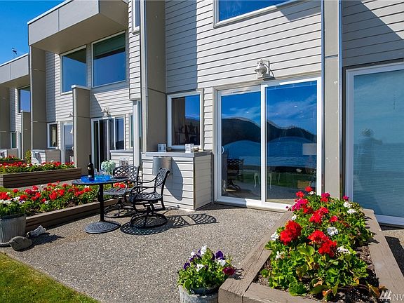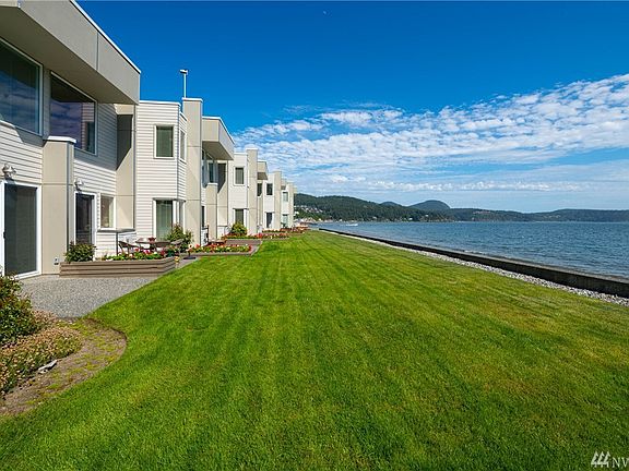 Wonderful waterfront townhome with spectacular west-facing view of bay, islands & Olympic Mts. Right off your patio eagles soar, herons wade, seals splash and kayaks to yachts cruise by. East-facing view is of picturesque Skyline Marina. Ten owner-occupied units in well maintained building that was re-roofed & front re-sided last year. Boat launches, walking trails, a natural wetland for birding, the iconic San Juan island ferries & 220 acre WA Park nearby. Perfect primary or get-away home!