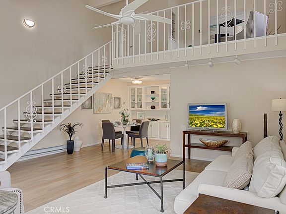 This Seville model is a two story, townhouse bright style condo located in the prestigious 55+ Active Laguna Woods Village/Resort Living. As you enter this large living room with Cathedral ceilings you face a beautiful built in cabinet and windows that bring sunshine into this area. The Kitchen and Dining Area are connected with the living room. There is a patio which greets you with fresh, airy ambiance with views of the surrounding trees and greenery. Perfect for relaxing. The Master bedroom has an en-suite bathroom. The upstairs guest bedroom, also a prinary bedroom with an-suite bathroom which has a large window that brings in sun. Additionally there is an upstairs loft/office area. New flooring throughout and newly painted. Washer/Dryer hookups are inside the home.. Very good location, walking distance to incredible Golf Course and Clubhouse 4, shopping, restaurants, medical facilities and much more. Amenities offered include 27-hole championship golf, tennis, paddle tennis, Lawn bowling, 2 fitness centers, 7 clubhouses, 5 swimming pools, Equestrian center, gardening, art studio, world-class woodshop, over 250+ clubs and organizations and much more! Plus, free bus transportation around the community, nearby shopping and bus trips. Country Club Living and just approximately 6 miles from Beautiful Laguna Beach! Carport: 2217-15