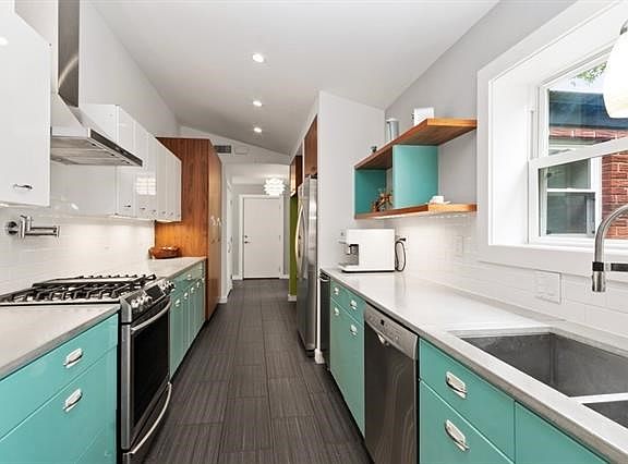 Spectacular Leawood Mid-Century Modern on an acre - totally meticulously renovated - stunning Great Room with wall of windows overlooking massive back yard - entertaining terrace runs the entire length of the house ending in a private loggia - way cool retro kitchen - laundry room off kitchen - primary bedroom and cool bath - cute, cute bedrooms - large 4th bedroom is currently a stay at home office - one attached garage + a detached 2 car garage or man cave or she she or kids dream play house - Palm Springs vibe in Leawood!! 2021-08-13