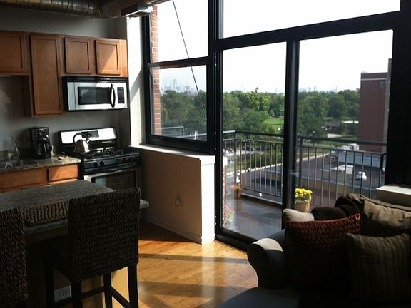 Beautiful new rental at McKinley Park Lofts with impressive views and balcony available Now. You will love coming home to this new building with polished granite floors, secure gates and courtyard and your own parking space. Once inside your new home you will enjoy the amazing views of downtown Chicago, jetted bathtub, washer and dryer and open chef's quality kitchen. McKinley Park is directly across the street for all your recreational needs.