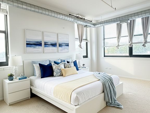 Now tenant moved out and the unit has been professionally deeply cleaned! Price includes one parking! 1485 SF, one of the biggest size two bedrooms unit in this building! This stunning 4th-floor apartment in McKinley Park offers an upgraded 2 bed, 2 bath layout with high ceilings, hardwood floors, and a spacious open-concept living area flooded with natural light from oversized windows-plus a sliding door leading to a large balcony with courtyard, city, and park views. The gorgeous kitchen features granite countertops, stainless steel appliances, a breakfast bar island, and ample storage, while the primary bedroom includes two closets and the unit boasts in-unit laundry, abundant storage, and one deeded gated parking spaces included. Building amenities include a fitness center, bike room, and party room, all in a secure elevator building with on-site management. Located steps from CTA bus & Orange Line (35th/Archer), minutes to downtown, and across from 72-acre McKinley Park (with pool, trails, sports fields, and more). Seller lost couple buyers because closing dates were much earlier than lease ending date. Now it is your gain! Don't miss this great opportunity!