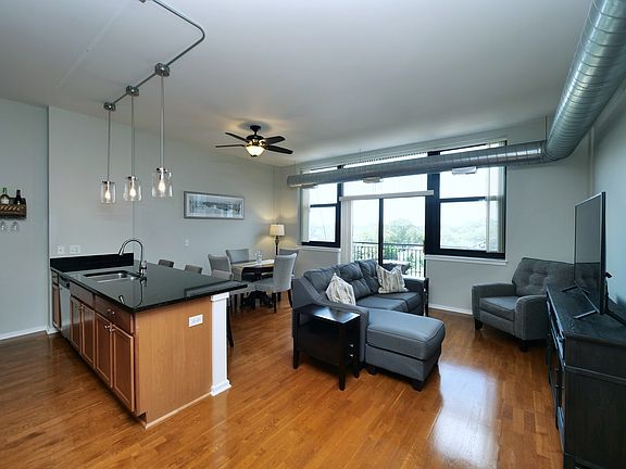 RARELY AVAILABLE top tier corner unit with fantastic views of Downtown, Courtyard, and Mckinley park. Close to CTA/55/90-94. 10mins from downtown. Roomy One bedroom loft with 10ft ceilings and Open floor plan. Wide hall w closets & bonus office nook. light-filled living area provides space for proper dining & private balcony access. Stainless steel appliances and granite counters. Great central location in a full amenity Gated, Elevator Building feat. gym, party room, bike room & onsite manager. *Parking space & storage cage included*