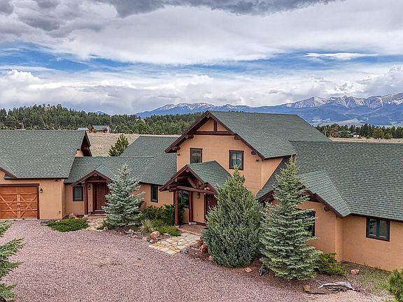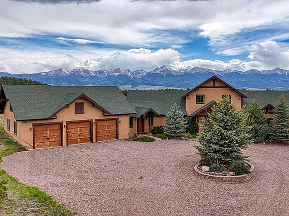 Quality Home with Big Views. 4 Bed | 4 Bath | All Ensuite | Oversized 3-Car Garage | Mountain Views This home delivers where it counts-built with quality craftsmanship and a layout that makes sense. Featuring 4 bedrooms and 4 full bathrooms, each with its own ensuite, there's plenty of space and privacy for everyone. The open floor plan centers around a large kitchen with hickory cabinets, large island, beautiful appliances, tons of counter space, and expansive windows that capture impressive views of the Sangre de Cristo mountains. Large gas fireplace warms the expansive living room with vaulted ceilings. The walkout primary suite is oversized and packed with comfort-complete with a gas fireplace, a huge 5-piece bathroom, and plenty of room to unwind. Mature Evergreen trees adorn the property, adding beauty and a mountain feel. The oversized 3-car garage offers plenty of space for vehicles, toys, and storage. Whether you're looking for a full-time residence or a mountain retreat, this one's a must-see. Solid build, smart design, and views that never get old. Truly, a quality home!