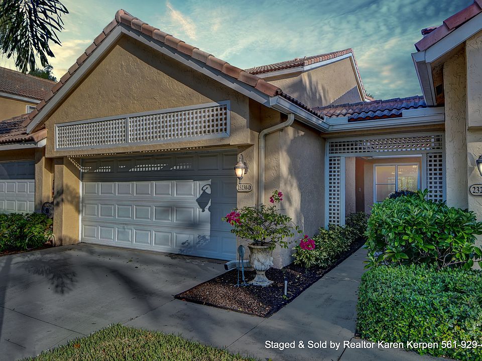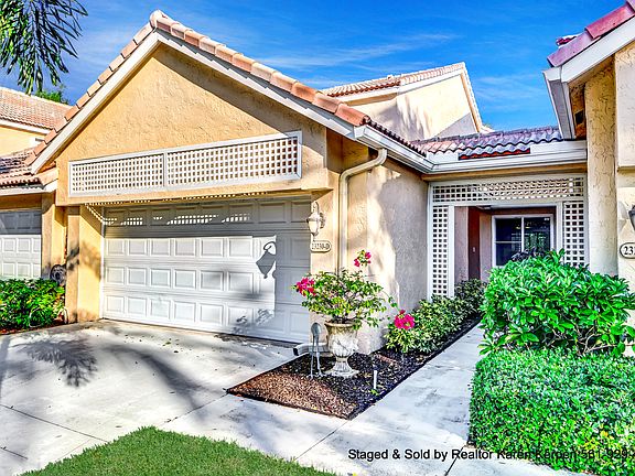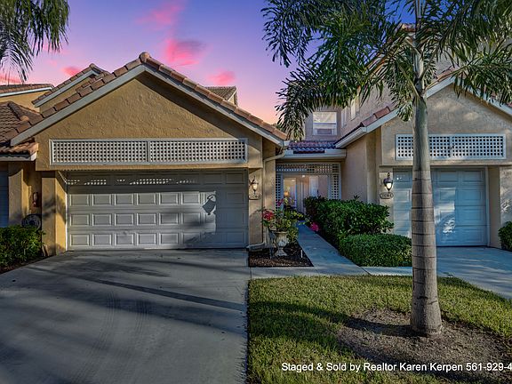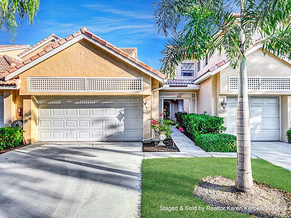 Property sold in just 2 days on the market! Staged and Sold by Realtor Karen Kerpen. 561-929-4737 Spacious, Meticulous, & Completely Updated!! What gets better than this! 3 bedroom/2.5 bath townhouse with tile flooring on a diagonal throughout. Featuring high vaulted ceilings w/skylights, impact windows/sliders, crown molding, 5 inch baseboards, new light fixtures + tons of recessed lighting, knock down ceiling (no popcorn) & more. Fabulous kitchen w/ granite counters, LG Stainless appliances, wood cabinets w/customized pull out shelves, self-closing drawers, pantry, & breakfast bar for additional storage. Great open layout w/split floor plan. Master suite is downstairs along with master bath and a guest bath/ 2 additional bedrooms upstairs and a full bath. All 3 bathrooms are super updated & offer custom designed vanities. Everything is very high end & is truly move in ready! Screened in patio is a great place to relax & enjoy peaceful water views. All furniture and electronics are negotiable. Two car garage is tiled and includes an extra refrigerator. Isles at Boca is a Pet friendly community (2 pets are allowed with maximum weight of 20lbs each) & all ages are welcome. The condo fee is $467 a month which includes: cable, building insurance, roof maintenance, exterior maintenance/painting, lawn/landscaping, water & sewer, alarm monitoring, pest control, community pool, exercise room, clubhouse/community room, and more! Great central location is close to fabulous shops, restaurants, & more. Amazing schools! Property sold in just 2 days on the market! Staged and Sold by Realtor Karen Kerpen. I can sell yours too! Call me 561-929-4737 Realty Home Advisors