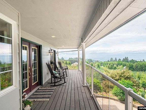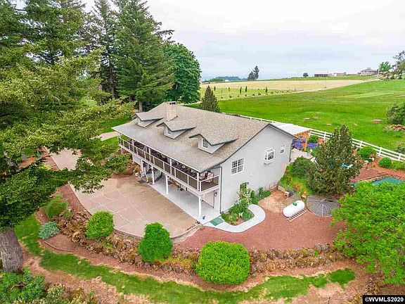 OWNER WILL CARRY! Amazing opportunity to own extraordinary property on 5 acres nestled in the Eola-Amity Hills w/breathtaking views of the Yamhill Valley. Gated entry to Custom built Cape Cod home w/3573 SF & features galore! 4 car attached garage. Year round enjoyment on wrap around covered deck & patio. Rolling greens, gardens, fish pond & shade trees make this a private paradise. Guest Cottage; Separate shop w/wet bar; Large Insulated steel shop; RV Storage w/hookups; Tree farm; On Farm deferral.