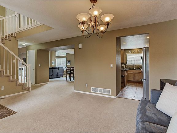 From the moment you enter the front door, you will be impressed by the vaulted ceilings and open floor plan of this home. Main level features formal living room/dining room, and spacious family room which opens to the eat-in kitchen space and large kitchen. Kitchen features newer Whirlpool stainless steel appliances granite tile countertops and kitchen island with plenty of storage. Walk through custom built barn doors to the professionally landscaped backyard. Upstairs you will find a master suite located separate from the two additional upstairs bedrooms. Loft area upstairs is perfect for playroom, home office, or finish it off for a 4th upstairs bedroom. Unfinished basement is over 1,000 square feet and has large, bright windows; perfect space for finishing to your specifications. Home is conveniently located near shopping, dining, and entertaining of nearby Southlands Mall and recreation at nearby Aurora Reservoir. Located in excellent Cherry Creek School District!