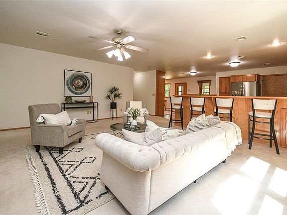 A Safe Haven! Custom built w/insulated filled concrete forms top to bottom and complete steel frame. Exterior steel siding w/native stone accents. Spacious living with 1,800 sq ft of open living, kitchen, & dining with rich solid woods—crafted cabinets, pull-outs, built-ins, & drawers galore & Pella double-hung windows. All appliances stay; walk-in pantry, & built-in desk add to the function. Primary suite features a walk-in shower, walk-in closet, & stackable washer/dryer, 2nd bedroom accesses bath with walk-in shower. Bring the outdoors in in the Sunroom with hot tub! Downstairs 1,122 sq ft of open heated/cooled space with a half bath, ready to finish as living, or a shop w/walk-out door & overhead door. Home is generator wired! Main level has an attached oversized 2-car garage, circle drive, RV/boat parking, plus 18x24 detached shop with concrete floor. Located in Flint Ridge, a 7,000-acre gated community on the Illinois River where ATVs are a way of travel, river vessels & shuttles, clubhouses, pool & more!