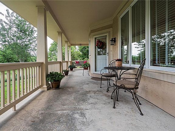 Secluded oasis in coveted Timber Trace Ranch! Surround yourself with the beauty of the outdoors while still being located just minutes from city-life! Walk in to gorgeous hardwood floors, high ceilings & windows with an incredible view! Your dream kitchen awaits w/ double ovens, gas stove, ss appliances, subzero fridge and TWO pantries! Master bedroom has sitting room, beautifully remodeled master bath and walk-in closet with professional closet system. Relax with family in your exquisite great room complete with 12' high coffered ceiling, a wall of built-ins, plantation shutters and fireplace with a granite surround. Large dining room is perfect for entertaining or large family gatherings! Second level includes 2 additional bedrooms and a 2nd full bath. Finished basement has exercise space, media room, 2 large bedrooms and a 3rd full bath. You're literally surrounded with a view of nature from every window in the house! Plenty of storage, including above the garage, which could even be finished as a workshop or office. Large outbuilding adds 2 more garage spaces with a concrete floor. Have a seat on the front porch swing and enjoy established perennials which bloom from spring through autumn while watching many varieties of birds and butterflies! Grab your fishing poles and head to the community pond! Timber Trace is a unique neighborhood just minutes from Hillsdale Lake! You couldn't ask for a more peaceful surrounding!
