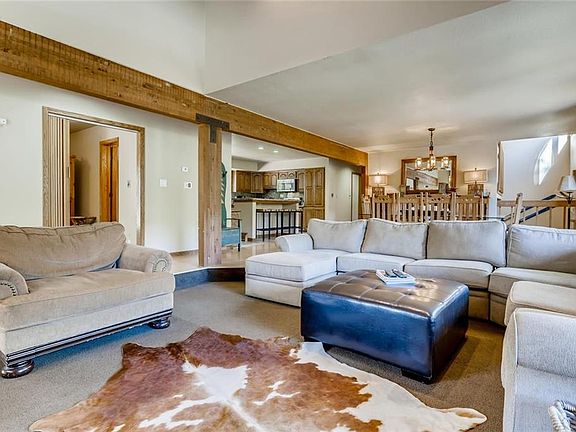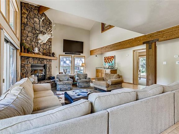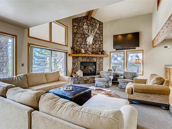 Keystone Mountain views from this 4 bdrm. PLUS office that is furnished as 5th bedrm. Great location close to restaurants, gondola, and trails out the back off the expanded deck. Primary, second home or Rental property, can sleep 12. Open floor plan w/vaulted ceilings & stone surround gas fireplace. The Enclave offers large square footage, spacious living areas. Private hot tub & sauna on lower level. 3 car garage & great clubhouse w/pool, hot tub, sauna, tennis & Racquet ball courts.