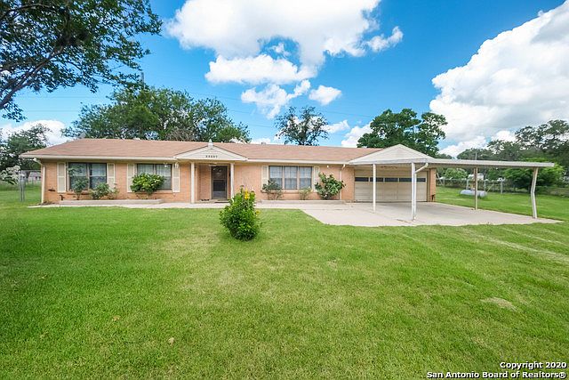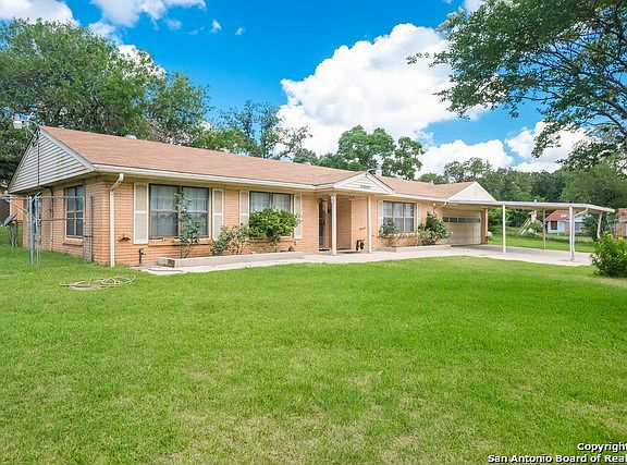 Lovingly Maintained 3 Bedroom 2 Bath, One Story Ranch Style Home on 3.32 Acres + 2400 SF Metal Shop with Electricity and Water. Great Floor Plan with 2 Living Areas, Study, and Large Dining Area for Family Entertaining. Kitchen offers Custom Cabinets, Updated Appliances, and Fixtures. No Carpet, Ceramic Tile throughout entire Home. Spacious Secondary Bedrooms. Master with Tub/Shower Combo. Large Fenced Yard, Mature Trees and Huge 2400 SF Shop could be additional Living area with minor finish out. 2 Car Attached Garage + Covered Carport Parking. Property is fenced and Cross Fenced. Convenient to Hwy 1604, and Toyota Plant. NO Restrictions! NO HOA! No City Tax.
