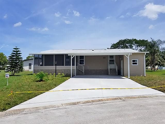 55+ Active Adult Community. This amazing home is located off the main road on a large lot. Home includes a double car carport, front screened porch, storage shed, Vinyl Plank Flooring throughout, spacious kitchen with lots of cabinets, dining area, Living room that includes a Tray Ceiling, 2 beautiful guest bedrooms, and a guest bath on one side. Also features an amazing master bedroom and bathroom includes a walk-in shower and a huge closet. Don't wait; call for an appointment today!