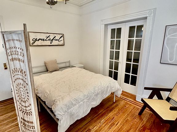 NO FEE. This stunning sun-lit drenched fully furnished loft in the heart of Bronx Little Italy is located on a quiet bucolic street only three blocks to world famous Arthur Avenue. This unit is an open plan concept with a stylish room divider providing privacy for the bedroom area. There is a separate home office with glass French doors and exquisite moldings adorning the entire space. The kitchen can accommodate a table and chairs and has quartz countertops and stainless steel appliances. The bathroom has a 60-inch tub and subway tile and a large window (with privacy blinds). Located 1 flight stairs up in a 5-unit building the apartment offers serenity from the city streets below yet proximity to public transportation and the best of Bronx Little Italy. Landlord pays for heat, hot water, cooking gas, electric and internet.