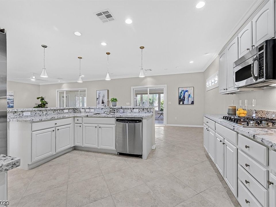 - Description: Breakfast Bar/Counter,Island,Lighting Recessed,Pantry,Quartz Countertops,Stainless Steel Appliances,Tile Flooring