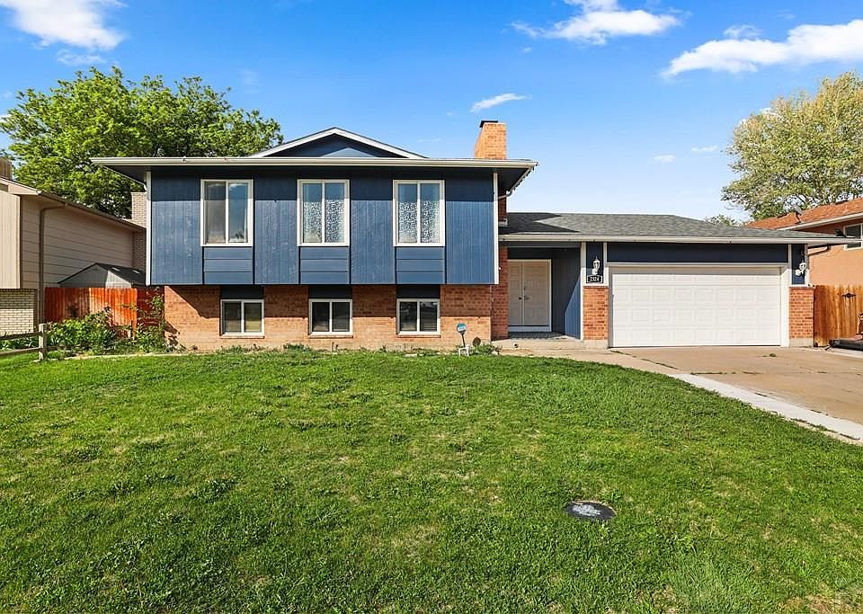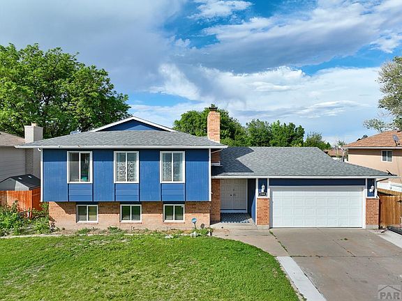 Well maintained bi-level home w/ 4BRs, 3BAs, & 2 car attached garage in the quiet established Starlite community of Pueblo. Newer 2019 roof. Central air. New laminate floor in Entry w/ coat closet & white iron rails to the UL & LL of this spacious home. Freshly painted w/ new wood laminate floors in the UL Living Rm & LL Family Rm. The Living Rm serves as a central gathering space, ideal for entertaining. The adjacent Dining Area is perfect for enjoying meals w/family & friends. The kitchen is well-appointed w/ample cabinetry & countertops, allowing for convenient storage & meal prep. The kitchen also incl appliances such as a dishwasher & new built-in microwave oven. The UL hosts 3BRs w/new LVP floors & 2Baths. The Primary BR provides a lighted ceiling fan, closet w/pocket doors, & an adjoining bath w/vanity & tub/shower. 2BRs (1 w/ a double closet) share a full Hall Bathroom w/vanity & tub/shower. The LL offers a Laundry Rm w/washer & dryer that stay w/the home. The highlight of LL is the spacious family/rec room, featuring a lighted ceiling fan & a wood-burning fireplace w/wall-to-wall brick surround. A custom barn door leads to a generous 4th BR & a shower bathroom, providing privacy & versatility for in-laws, guests, or a teen suite. 2-car attached garage for convenient parking. The spacious backyard boasts a newer fence, concrete patio w/ space to fit a covered canopy, & mature trees & shrubs incl a cherry tree, offering a tranquil outdoor space for relaxation.
