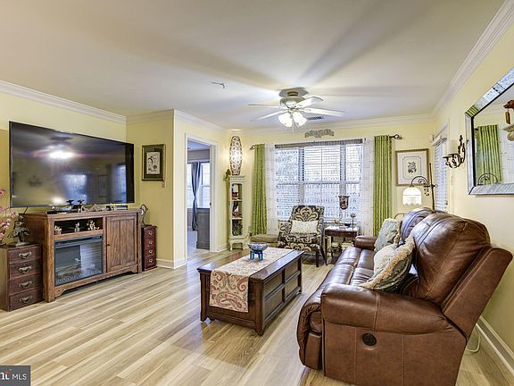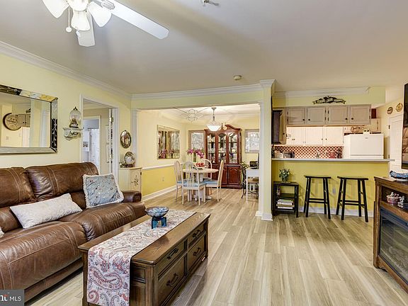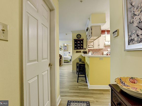 Beautiful garden-level condominium tucked away amongst mature trees that offers a clubhouse and in-ground pool for all your entertaining needs! Arrive into the main level and experience modern flooring, chair railing, decorative pillars, and crown molding. Let the kitchen inspire gourmet meals boasting a breakfast bar, ample storage, and updated appliances. Relax and unwind in the primary bedroom suite featuring plush carpet, a walk-in closet, and a jetted soaking tub. Enjoy mornings overlooking the landscaped grounds on the private patio. Major commuter routes include I-95, I-695, and I-83. Updates: Flooring