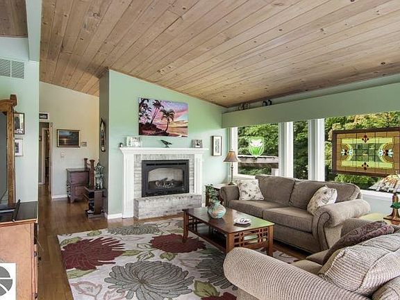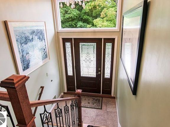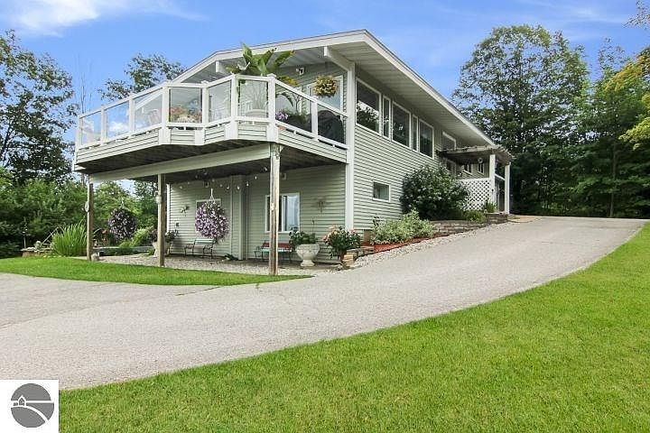 VIRTUAL TOUR AVAILABLE. Beautiful East Bay views from this very nice updated 4 bedroom, 2.5 bath home with 2868 Sq. Ft. Located close to town on a partially wooded 3.38 acres. Kitchen features granite countertops with island, Cherry cabinets, new black stainless appliances, tile floor. Living room, dining area with Ash hardwood floors, brick gas fireplace, lots of windows and two large sliders to let in lots of light and East Bay views. Large deck off of the living room and dining area. Master bedroom with a private deck, Hickory hardwood floors, private master bath with granite, tiled shower and floor. Updated lower level walkout with new paint, water-proof laminate flooring, Shiplap wall in Family Room and 2 large bedrooms and a 3/4 bath, lots of storage, wine cellar. Huge main floor laundry/mud room. 24x24 finished heated and air conditioned attached garage and a 30x36 outbuilding with concrete floor. Main deck is 14 x 28 and deck off Master Bedroom is 10.6 x 15. Pond and above ground pool. Great location near stores and the Bay. A must see!