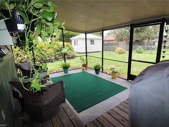 Reminiscent of an Arts and Crafts style bungalow, this cozy home has a lot to offer! The Kitchen has been completely updated with wood cabinets, granite countertops, beveled subway tile backsplash; new appliances featuring a wall oven & microwave, and a sleek s.s. range hood. The Living Room has a skylight for extra light and opens to the Dining Area with French Doors that access the Florida Room/Office. Down the hall are 2 Bedrooms - an en suite Master Bedroom, a Guest Bedroom, and Full Bath - plenty of storage space in all rooms & hallway, including walk-in closets! Milled cedar accents and wainscoting throughout the home add to its Old Florida charm. Enjoy peaceful days on the screened-in Lanai overlooking a huge backyard - plenty of room to add a pool (with Southern exposure) or let the pets run around. There's chain link fence all around the property. Other updates include a newer A/C, new garage door, and Sellers are in process of putting on a NEW ROOF! Located in Ft Myers Villas, close to everything! Restaurants, shopping, schools, medical; about 20 minutes to RSW Intl. Airport and an easy drive to Ft Myers Beach and Sanibel.