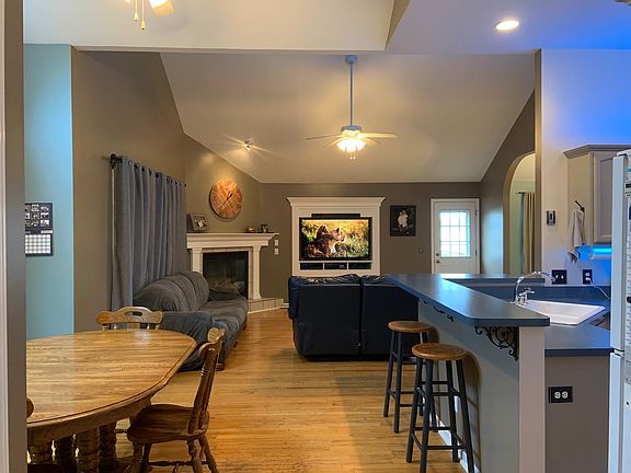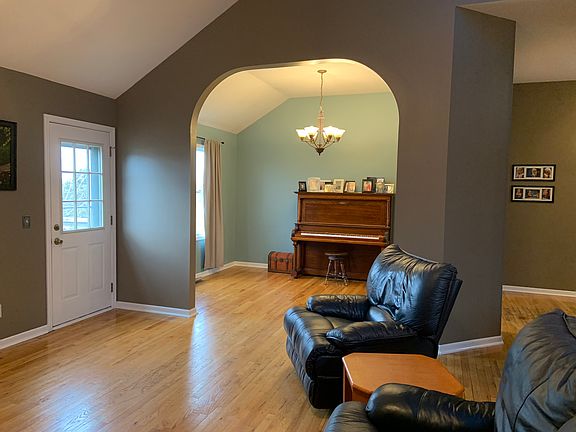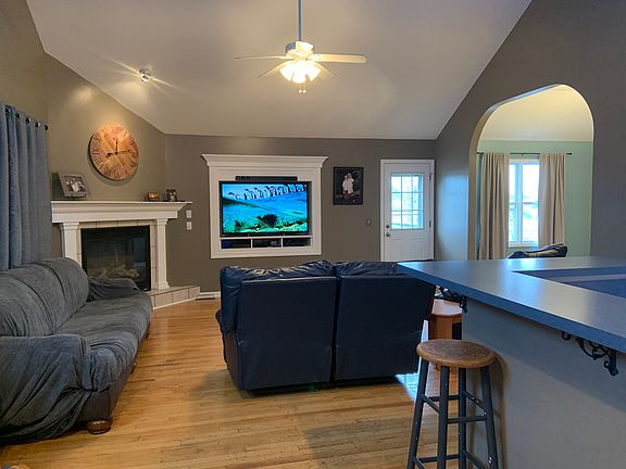 Ranch with a spacious open floor plan. Vaulted ceilings in living room, dining room, breakfast room, master bedroom, master bath, and 2nd bedroom. Finished walkout basement includes kitchenette area, large family room, large bedroom, full bath, 2 storage rooms, and a craft room/studio. Deck with concrete patio below. Fenced yard with mulched playground.
