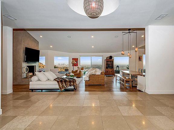 A fully furnished incredible resort style home sitting on the peak of a mountain in the Hollywood Hills with exquisite views that stretch from downtown to the ocean. 5 bedroom home, with 4 full and 2 half baths. It has a gated entry with an extended long driveway to park up to 6 cars. There is a huge grass front yard. Walking in, the house is breathtaking. It has an open floor plan with expansive windows stretching across the house. There are majestic and exquisite views from every room. The atmosphere is bright and clean, yet comfortable and cozy. The living room is furnished with lovely Ralph Lauren furniture and the house has a mixture of hardwood floor, stone, and carpet. It has a massive deck with a pool and hot tub, along with sweeping views of the hillsides, city, canyons, and ocean. The house has been used for filming many movies, TV shows, magazine spreads, and music videos. Very centrally located, yet tucked up in the hills where you are surrounded by a sanctuary of nature! Two months minimum, up to a year. Open to discussing shorter term leases for special situations - rate will change.