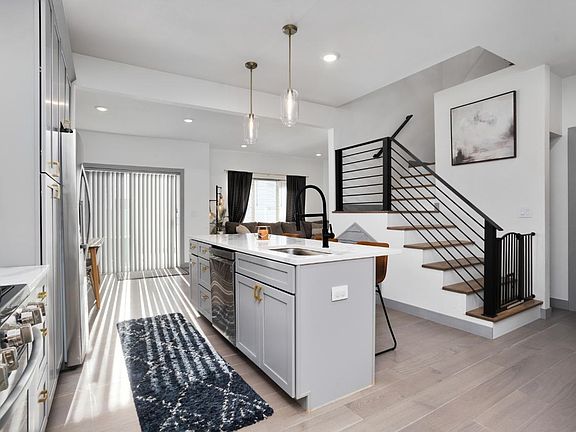 Welcome to The Highlands at North Hill! This 2018 constructed townhome is ready to welcome new owners. The upgrades in this townhome are absolutely beautiful. This home is conveniently located near Minot's newest additions including Minot North High School, grocery stores, coffee shops, dining and more. It is also located just off of 83 Bypass making commutes to the Air Force Base and the rest of Minot a breeze! When you first approach the home, you will immediately appreciate the modern white vinyl siding with the tastefully contrasted black doors and trim. As you enter the home from the front porch, you will be welcomed to the open concept kitchen, dining and living space. The kitchen features a large island that is perfect for entertaining, grey cabinets with gold accents, stunning quartz countertops, unique lighting, and stainless steel appliances. The dining room is nearby and has its own unique light fixture and a great view of the backyard. The living room is the perfect size for a sectional couch and more. The area under the stairs was uniquely created into the perfect space for your four legged friends featuring a mini house design, lighting, and more. There is a half bath off this area, perfect for guests. There is also a pantry/storage closet in this area. The utility room and crawl space access are discreetly tucked away from the main living area. As you start up the stairs, you're sure to appreciate the modern design of the steel railing and modern flooring. At the top of the stairs is the laundry area with shelving and doors to hide the space. Off to the right is the primary bedroom which features a large walk in closet and an en suite bathroom with dual vanities and plenty of storage. On the other side of the upstairs are two additional bedrooms and another full bathroom. These rooms are both good size and feature large closets. The garage of the home is heated and finished making winters a bit easier. The backyard features no maintenance white vinyl fencing and an entertaining space. Contact your preferred agent today to arrange a showing and make this dream your reality!