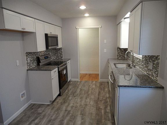 Solid built home, fully updated. Brand new kitchen: granite counters, stainless steel appliances & tile backsplash. Two brand new bathrooms. Large living room has brick fireplace. Refinished wood floors throughout. Vinyl planks in kitchen/bath/dining. New paint, lighting, 6-panel doors, electrical panel. All brand new: water main, plumbing, drain pipes & hot water heater. New roof & gutters. Storm windows. Huge fenced yard with mature trees. RV parking. Large covered patio. Garage with workshop & storage.