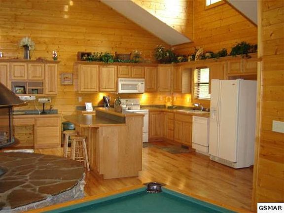 LOOK NO MORETHIS IS IT! Whether youre looking for a permanent residence/2nd home or investment, this 2BR/2BA cabin will fit your every need. Youll be amazed at how open and spacious it is excellent for all those family gatherings. Cabin is set in a hemlock forest the decor is spectacular. The true eye-catcher is the gorgeous round stacked stone gas fireplace in the center of the great room. Features pool/game tables, 2-master suites w/king beds, spa tubs and French doors to deck w/hot tub and gas grill. Fully furnishedyou wont be disappointed. From the time you enter Cedar Falls over the wooden covered bridge until you reach the cabin. you will be taken back by the beauty of the area and all the amenities.