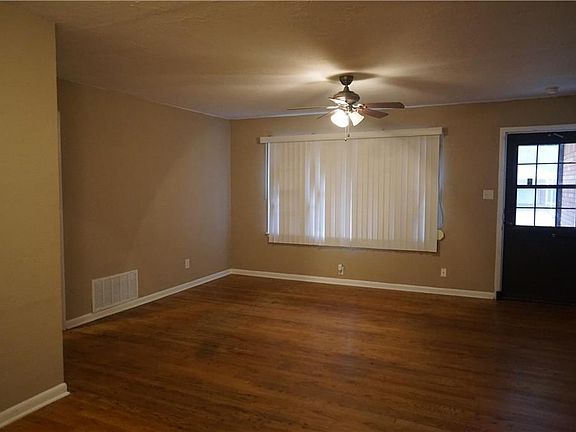 Nice original hardwood floors welcome you as you enter the living room. HUGE updated kitchen with granite countertops has room for an island and dining table/chairs! Inside utility room off kitchen. Master bedroom is large and will accommodate plenty of bedroom furniture as well as sitting area to watch TV, read or set up a computer. Garden door leads from master to patio. Garage has been converted into third bedroom, which is additional square footage not reflected on the county information. There are two driveways to the property that provide plenty of off-street parking and an in-ground storm shelter. The backyard is terraced and backs up to the field/playground behind Steed Elementary. Wooden shed in back for storage or hobbies.