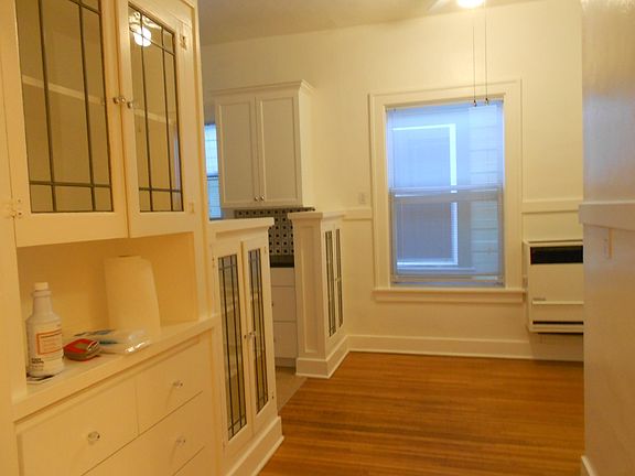 High ceilings and lots of light. This 1025 sq. ft. two bedroom, one bath apartment is located in the heart of the Nob Hill district in NW Portland. 1/2 block from NW 23rd with all of its restaurants and shops, the apartment has beautiful hardwood floors, high ceilings and built-in leaded glass cabinets. The neighborhood is located within walking/biking distance of Forest Park with miles of hiking and biking trails and Washington Park with the Rose Gardens, the Japanese Gardens and the Hoyt Arboretum. Residents have convenient access to many grocery options including New Seasons, Trader Joe's and the Food Front co-op. There is also a neighborhood library. The Pearl district and downtown are easily visited by walking, biking or streetcar. The apartment rents for $1795 which includes water, sewer, garbage and a storage unit. We have a no pet policy and a no smoking policy and require a one year lease. Please call or email if you would like more information. Rent includes water, sewer, garbage and a storage unit. We have a no pet policy and a no smoking policy and require a one year lease.