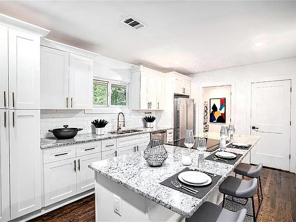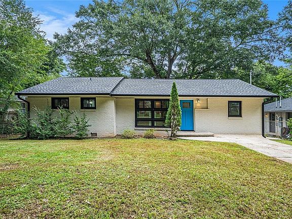 Wonderfully renovated open concept ranch. Modern kitchen with trendy marble countertops, white shaker cabinetry with gold finishes and stainless appliances. Hardwoods throughout. Both full baths have been nicely renovated, spacious master shower with dual shower heads. Split bedroom plan. 3rd bedroom/study with builtin desk/bookcases on far end, great for roommate and/or home office. Refreshed paint and flooring throughout. Newer roof and water heater (both 2021). Brand new Anderson windows throughout (2022) with 10 yr warranty. Fridge, washer & dryer are included. Large level fenced backyard ready for your pets or entertaining pleasure with newer storage building as well. Easy access to I-20, EAV and east Lake shopping close by.