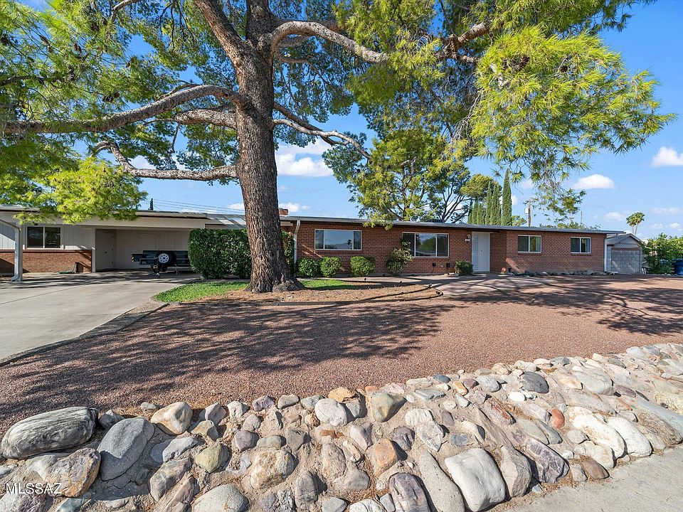 SHOWINGS ALLOWED WHILE UNDER CONTRACT. RARE FIND! This meticulously maintained home, lovingly owned by the same family since 1972, offers timeless charm and endless potential. Situated on over 1/4 acre, the property features a HUGE air-conditioned workshop equipped with high-voltage outlets and direct access from the carport, perfect for any hobbyist or those in need of extra space for a private office, exercise room or anything your heart desires! With multiple storage areas, you'll have ample room to organize and expand.The kitchen features custom-made mesquite cabinets, durable Corian countertops, and a convenient pull-out island, providing additional prep space for your culinary adventures.Square footage includes main home living space and detached heated/cooled bonus room. Unique built-in laundry hampers are featured in the bathroom cabinets for added functionality. The serene outdoor setting, with mature pine trees provides ample shade and makes for peaceful living. With plenty of parking, including room to accommodate an RV, this home is as practical as it is charming. Recent updates include a re-coated roof and a whole-house water softener to combat Tucson's hard water.