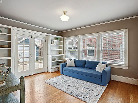 Perfectly nestled between Division & Hawthorne, this dreamy Bungalow sits on a quiet street. The gleaming hardwood floors welcome you into this light-filled home. Spacious entryway open to living & dining room with lovely, original built-ins & gas fireplace. Main floor complete with den off living room with French doors to backyard, custom tile bath with Japanese soaking tub, kitchen with generous cabinet space & breakfast nook with bay window & French doors to back deck. The upper level features 3 bedrooms & full bath. Large lower level with room for all your activities - movie nights, workout space, craft room, workshop - your pick! Fully fenced backyard with large deck, fun treehouse & detached garage. Newer furnace & AC! [Home Energy Score = 1. HES Report at https://rpt.greenbuildingregistry.com/hes/OR10188902]