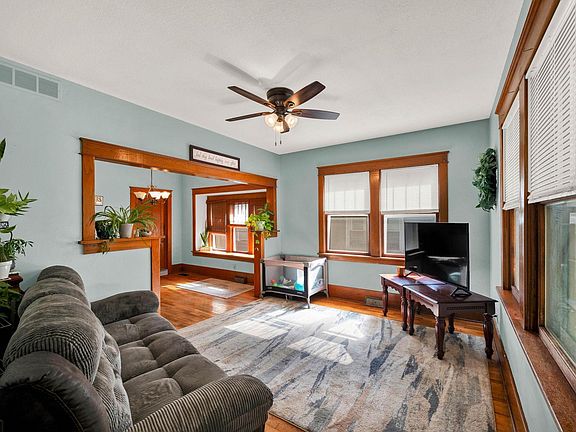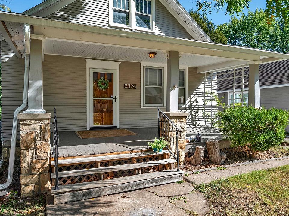 This charming bungalow is a must see! The covered front porch with rose trellis welcomes you home! With 2 bedrooms and an updated full bath all on the main level, as well as a spacious 3rd bedroom upstairs, it has just the right amount of space to be a great starter home! Original wood floors, craftman style trim, built-ins and solid wood doors add to the character of this sweet home! Additional space includes a large unfinished stone basement, a decent sized mud room/rec room leading out to the covered back patio, as well as plenty of storage space in the attic and closets throughout. This home has been well loved and maintained with new roof and gutters in 2021, newer sewer line in 2014, New carpet on stairs going to 3rd bedroom and fresh paint. The one car garage faces the alley for easy access. Sellers have used garage for a storage shed but can be turned back into a garage easily. Sellers say the atmosphere of the neighborhood is friendly and welcoming. You wont want to miss this one! Schedule your showings today! Priced to be sold AS-IS.