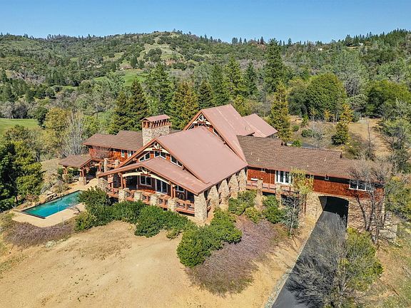 33 + Acre Ranch Compound Primed for Off the Grid Living !2324 Skunk Ranch is being sold in conjunction with two other neighboring parcels and offered fully furnished. Enter the home through a private gated driveway about quarter mile from main road. At the top you will find this truly one of a kind rustic estate overlooking the amazing views. No expense was spared in building this home with timeless finishes. Single story home has a private master wing of home complete with den/office and fireplace. Other wing of home you will find 4 en suite bedrooms and laundry room. Soaring ceilings in family room/kitchen complete with a coffee bar nook. Outdoors you will find a covered wrap around deck with loggia that is accessible from each bedroom.Lower level of deck include salt water pool and another covered fire pit. Home is equipped with generator installed last year, top of the line water softening system, wells, and everything you could possibly need. This home is meant to be enjoyed for generations! Possibility that land is zoned for Cannabis Cultivation, Agriculture, or Livestock but must confirm with county. Buyer to verify square footage.