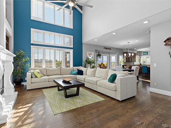 Ask Listing Agent how to save 1% off rate for the 1st year! Perfectly situated on premium lot backing to open space with stunning mountain views! A grand entry welcomes you into a light-filled open floor plan with high ceilings throughout, creating an immediate sense of elegance & space. The living room features soaring ceilings, cozy fireplace, & built-ins. A spacious kitchen with eat-in table space also opens to a formal dining room ideal for both everyday living & entertaining. A charming sitting room with its own fireplace & a private office with double doors & scenic views complete the main level along with a convenient half bath & laundry. Upstairs, the primary suite is a true sanctuary with a private deck, three-sided fireplace, & a five-piece ensuite bathroom with a soaking tub positioned to take in the mountain views. The expansive walk-in closet is a dream with abundant organized space. Two additional bedrooms each with their own ensuite bathrooms provide comfort & privacy, while the 4th bedroom is currently configured as an additional walk-in closet for primary suite. The finished basement features a large recreation room perfect for movie or game nights along with an additional bedroom & full bathroom. The backyard is newly landscaped for large gatherings with a stained stamped concrete patio with fire pit, three sub-irrigated raised garden beds, & a fully rebuilt two-story waterproof deck. Practical upgrades include a 9kW fully paid-off solar system offsetting about 85 percent of energy use, Tesla 80-amp EV charger, triple-pane ultra-efficient windows, new air conditioning, remodeled upstairs bathrooms, smart home technology, fresh interior paint with white trim & black doors, new oversized water heater, radon mitigation system, foam jacking to level walkways & driveway, upgraded downspouts, & a secure dog run. With a 3-car garage, spacious living areas, & breathtaking outdoor views, this home combines elegance & comfort in a truly remarkable setting.