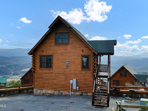 WELCOME TO ''A GLIMPSE OF HEAVEN''~~~Exquisitely maintained 2 ½ story, 2,295 square foot 2bd/2ba log cabin with breathtaking panoramic views of the Smoky Mountains located in the highly desirable Legacy Mountain Resort!! This cabin has been a high producing vacation rental and is being sold fully furnished and ready to enjoy for yourself or used as an income property! The main level features a spacious living room with stone electric fireplace, vaulted ceiling and a wall of windows to observe the stunning views. Completely stocked full size kitchen with all the appliances conveying open to the dining area. You will also find a spacious bedroom and bath on the main level. Venture upstairs to watch movies in your own loft theater room with surround sound, theater seating and 9-foot theater screen. The loft also features a nook with 2 queen sleeping areas. Downstairs you will find a large bedroom & ensuite with jetted tub and separate shower. Enjoy tons of fun in the large recreation area with pool table, arcade console as well as a small wet-bar with bar sink & mini fridge. Lower deck with hot tub and amazing views. Legacy Mountain Resort's HOA fee covers its own clubhouse complete with a gym, pool and a sauna for family & quests, monthly water bill for cabin and common area maintenance. The cabin is set up currently to sleep 8 quests. Great location short drive to Dollywood and The Great Smoky Mountains National Park. Revenue 2020 $81,063; 2021 $91,513 and 2022 $82,292. There are no rental restrictions in this resort. Current property management being done by Elk Springs theater screen. The loft also features a nook with 2 queen sleeping areas. Downstairs you will find a large bedroom & ensuite with jetted tub and separate shower. Enjoy tons of fun in the large recreation area with pool table, arcade console as well as a small wet-bar with bar sink & mini fridge. Lower deck with hot tub and amazing views.