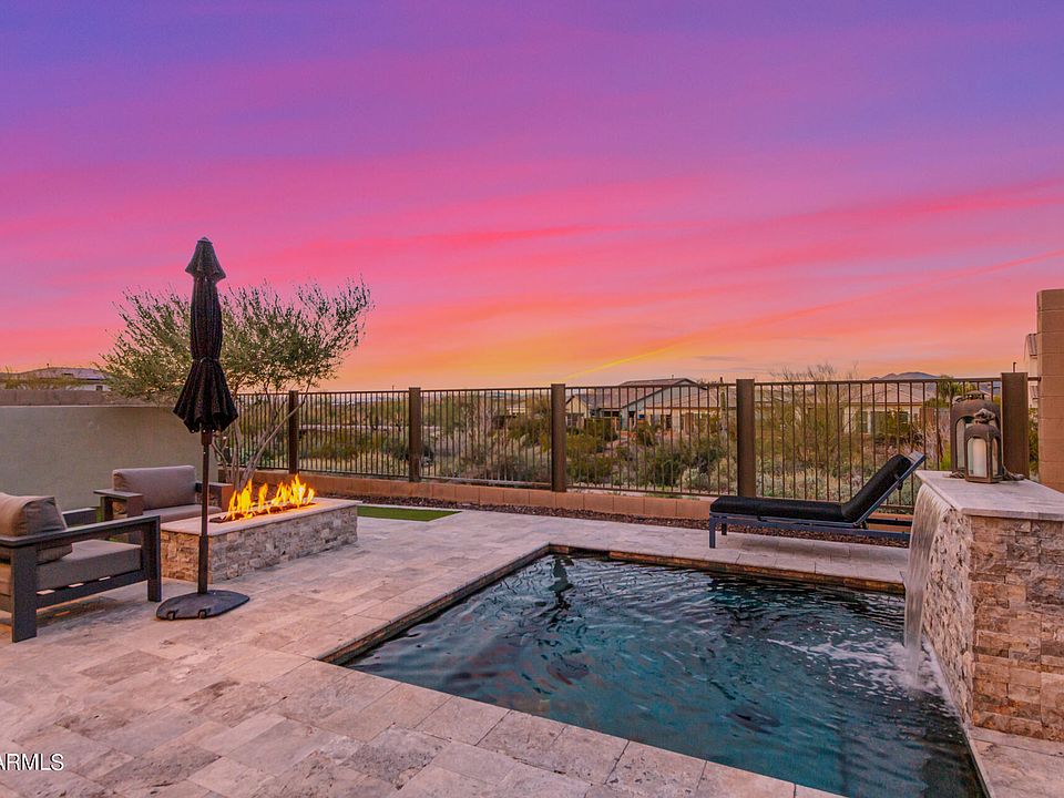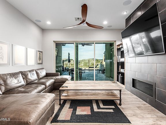 LOCATION – LOCATION, 3 Bedrooms, Den, 2.5 Bath, 2 Car Garage plus Golf Cart Garage, Private courtyard with pavers, as you enter through the Iron front door you will fall in love with the Open Design and natural light throughout, 10' ceilings. Granite countertops and upgraded shaker cabinets, double ovens, built in refrigerator! Kitchen opens to the Great Room with built in Fireplace! Spacious owner's suites, offering luxurious bath retreat with a large walk-in shower, dual vanity and walk-in closet! Upgraded flooring throughout! Enjoy your morning coffee in the Backyard retreat with Spa, built in fire pit with designer landscaping with Travertine and synthetic grass! Move in ready, original owner has meticulously cared for this incredible one of the kind home, located within the beautiful Collins Creek community surrounded by STUNNING MOUNTAIN LANDSCAPE. Convenient located close to I-17 & 101, shopping, dining and so much more!