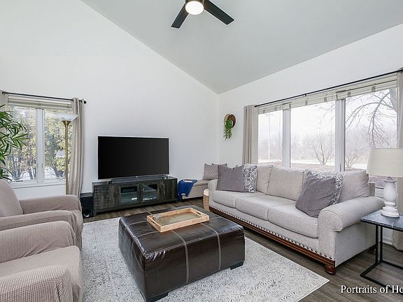 Rarely available end unit duplex with 3 bed including 1st floor primary, 2.1 bath, huge loft and full basement. Upon entering, you'll be welcomed by the light-filled open floor plan. Large updated kitchen with stainless steel appliances, breakfast bar and large eating area with bay windows. The dining area with sliders to the private side patio and living room boasts vaulted ceilings and a cozy fireplace. The main level master suite is a true oasis, complete with an updated full bath that includes a wet room, jetted tub, dual vanities, and a large walk-in closet. Huge laundry room and half bath round out the main level. Upper level offers a spacious loft as well as two generous bedrooms each with double closets and shared full bath. The massive unfinished basement offers ample storage space and is ready for your ideas. Excellent location just 5 minutes from downtown Plainfield, 3 min from Costco, and across the street from Lake Renwick Heron Rookery Forest Preserve. Also close proximity to Rt 30 with tons of shopping, dining and I-55. MULTIPLE OFFERS RECEIVED, HIGHEST AND BEST DUE BY 4PM SUNDAY, 3/19.