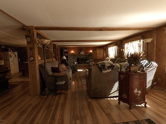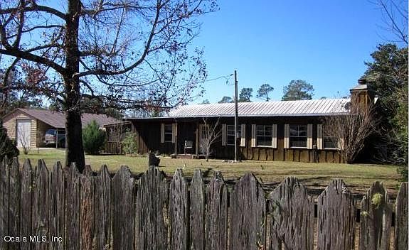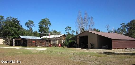 Incredible country setting with one-of-a-kind Pecky Cypress siding and unique finishes throughout. The property is one full acre is located within the Ocala National Forest Campsites. A public boat ramp is just minutes down the road, with access to Lake Ocklawaha/Rodman Reservoir. The house was constructed in 1980 and features 3 bedrooms, 2 full baths, central A/C, an open floorplan, and wood burning fireplace. Extra features include a 12x12 screen room off the main bedroom, an above ground pool (16 ft diameter), and numerous outbuildings. The 40x24 garage/metal building was constructed in 2008, with a 40x12 carport on each side.