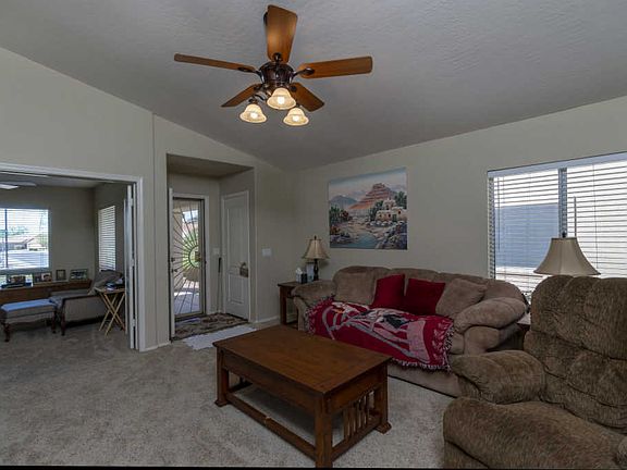 Come see this gorgeous home located in the great adult community - Sundance. As soon as you walk through the front door you won't be able to miss the vaulted ceilings, spacious living room, and a perfectly placed kitchen. This great 3-bedroom, 2-bathroom floorplan features 2 master bedroom suites with 2 full baths, Den/Office, upgraded fixtures, countertops, and cabinets with pull out shelving. Both of the large master suites include- over sized walk-in closets and the master bath includes a separate shower/tub and dual sinks. Are you ready to relax? Great! You've got to see the backyard. LOW Maintenance, tons of shade conveniently located on the golf course with AMAZING mountain views and recently installed artificial turf. YES! No more mowing the lawn... Call for your showing today!