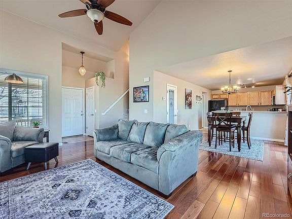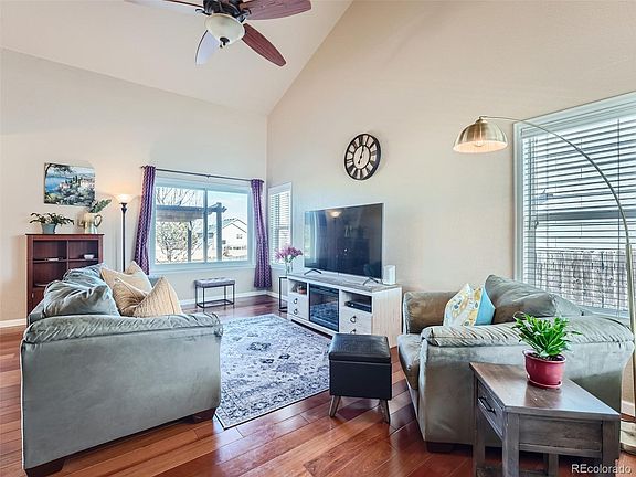 Welcome Home! This is the exciting property in Saddle Rock Ridge you’ve been waiting for presenting convenient access to amenities, schools, and nestled on a quiet cul-de-sac. Step in from the front porch to be greeted with vaulted ceilings, an abundance of light, and seamless open-concept floor plan. The great room moves into the dining space and kitchen where you’ll discover a pantry room and sliding doors to the terrace. The horseshoe kitchen in an advantageous spot accommodates multiple cooks and provides plentiful cabinet space. Laundry closet with new washer + dryer, garage + basement entries, and powder room perfect the main level. Ascend the stairs and find the secluded primary suite with sitting area to enjoy the overlook. Accompanying the primary is an en suite bathroom + walk-in closet. The upper level delivers another full bathroom, and two additional bedrooms with built-ins, spacious closets, and coveted south-facing windows. In the basement appreciate a large finished rec room with shelving and a far-reaching storeroom. This level is fit with egress windows offering natural light and additional peace of mind. The backyard is a private, thoughtfully curated oasis and includes the spa for year-round benefits. Enjoy Colorful Colorado with three finished levels, over 2,000 square feet, and an attached two car garage. Schedule a showing today or visit an open house.