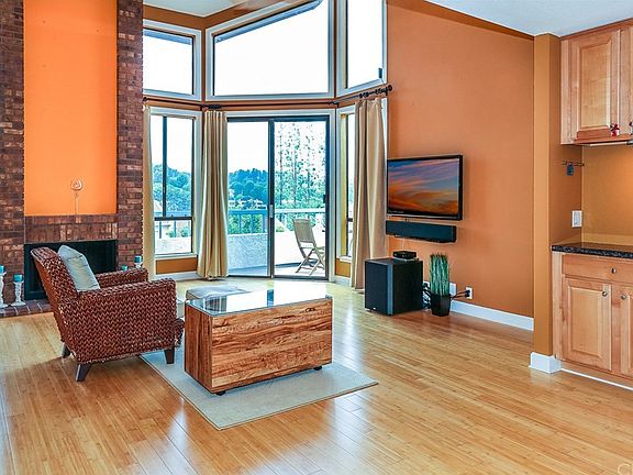 Beautifully upgraded condominium. Features include gorgeous bamboo flooring, large skylight, bathrooms with granite countertops, custom multi-jet shower fixtures, travertine surrounds and flooring. Upgraded eat-in kitchen with granite counters, newer cabinets and updated appliances. Floorplan works well for roommates, as bedrooms are separate and each has a full bath. Spacious laundry area with washer and dryer included. Lots of windows, very light and bright. Enter and see the dramatic large living room, with super-high cathedral ceilings, and floor-to-ceiling fireplace, Recessed lighting. Separate Dining Room, View from the private balcony outside both living and master bedroom. On the top level there is a large loft, which overlooks the living room below. It has been expanded and is large enough for an office, guest room, den, sewing room, or "man cave." Large one-car garage with high ceilings and an additional storage loft (with pull-down stairs). The covered carport is directly across the garage just a few steps away. This home is in beautiful, private, gated Finisterra on the Green. Membership to Lake Mission Viejo-with fishing, boating, swimming, and summer concerts, a very short walk away. Major shopping and fine restaurants conveniently close.