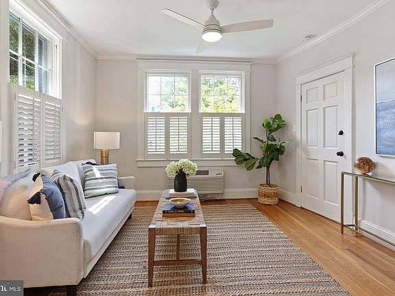 Rarely available, bright & light filled Glover Park condo. 2 Bedroom/1 Bath, with windows on 3 sides, this unit lives like a one level home. Enter into your living room, raised up from the street level so that the view is greenery and sky. A full sized Dining Room allowing for great gatherings and dinner parties. The renovated galley kitchen has a window to look out into the yard. Complete with brand new shaker cabinets, quartz counter top, & tile floors. A fully renovated bathroom, with new soaking tub, vanity, flooring and fixtures. Primary Suite features a spacious bedroom with large walk-in closet with custom California Closets and large brand new picture window. Second bedroom has a wall of built in shelves, and the versatility to make use of it as a bedroom/office. Full sized front load Washer & Dryer in the unit. Additional storage in the basement (along with a communal Washer & Dryer if you should need). A fenced in communal patio space is easily accessed thru your mudroom. Separately deeded parking in the rear. Near Whole Foods, Trader Joe's & Safeway, dining and shopping, public transportation, Guy Mason Recreation Center, Stoddert Elementary, Hardy Middle, Georgetown University, & GU Hospital. All the conveniences of modern city life and the beautiful escape of the woods of Glover-Archibold Park make this Glover Park gem one you surely don't want to miss.
