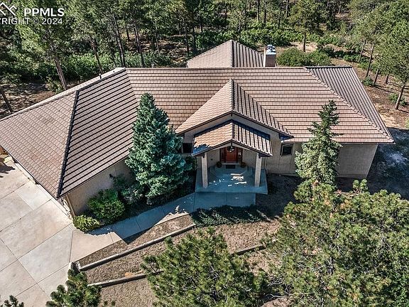 Pikes Peak Views, Pikes Peak Views and more Pikes Peak Views! This property is one of a kind nestled in a beautiful 9.4 acre lot featuring a main level owners suite, great room and incredible mountain views from many indoor living spaces and deck. The deck stretched the entire length of the property with beautiful forest and Pikes Peak views. The property was built with builder grade insolation and thicker exterior walls for utility efficiency and a quiet and serene experience. The garage features include; three car garage with one bay accommodating most RV's, insulated walls, drywalled and painted, workshop. The attack space features pull down steps for easy access. The property includes a livestock and storage outbuilding with 8 livestock stalls, tack rooms and a large open paved space for many uses! The seller originally purchased two lots totaling almost 10 acres opposed to the neighboring properties of only 5 acre lots! NO HOA for some additional opportunities. Beacon Light the access road is scheduled to be paved in the very near future. This is a hidden gem with many unique attributes. Act quickly as we expect the home to sell quickly!