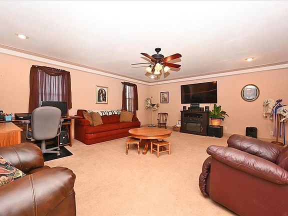 Great country setting for this 3 bedroom 3.5 bathroom home. Kitchen is a cooks dream with all the many cabinets and plenty of counter space to work on. Walk in pantry with additional sink and lots of custom cabinets. Entertain all your family and friends in the open living room, dining area and kitchen area. The large master bedroom is located on the main level with 2 walk in closets. One is also a safe room with a half bath. Rest and relaxation is found in the private room just off the main living room. It has beautiful wood floors, walls and ceiling. Need some outdoor time? This home has 2 outbuildings that makes a great workshop or she shed all sitting on approximately 4 acres. The circle drive makes it an easy access and provides lots of parking.